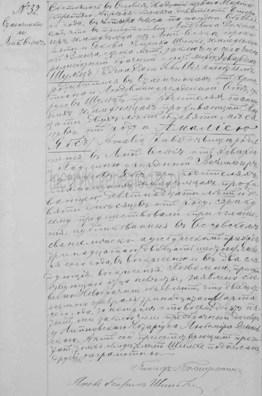 1902#32 oo Stajenczynki . Leg Osiek - Eduard Schultz oo Amalia Jabs